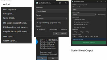- Standalone Exports: PSD and Aseprite export functions are built-in and do not require the actual software to be installed.